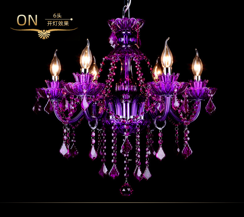 Lustre en cristal violet, éclairage luxueux pour salon, suspension LED en cristal violet, luminaires suspendus pour salle à manger et cuisine.