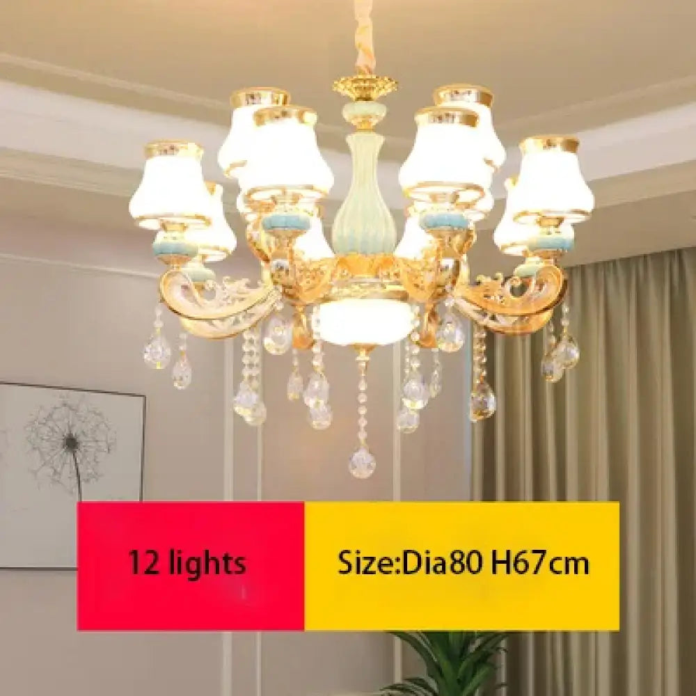 Elegant Blue Ceramic European Crystal Chandelier - Perfect for Living Rooms, Dining Rooms, and Bedrooms - DecorGlobe