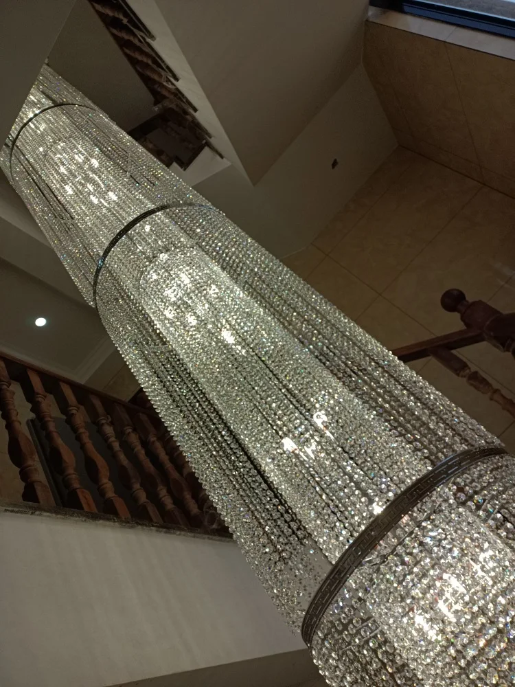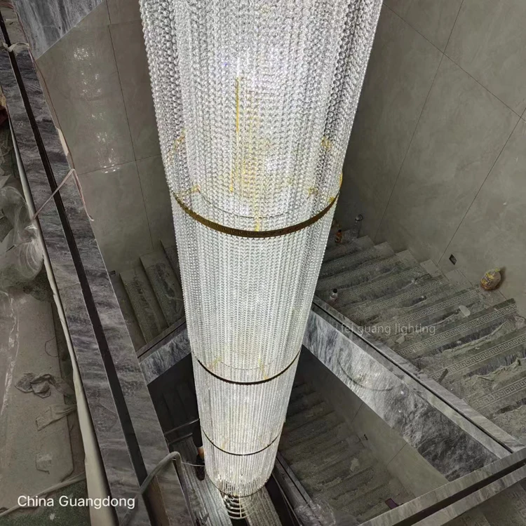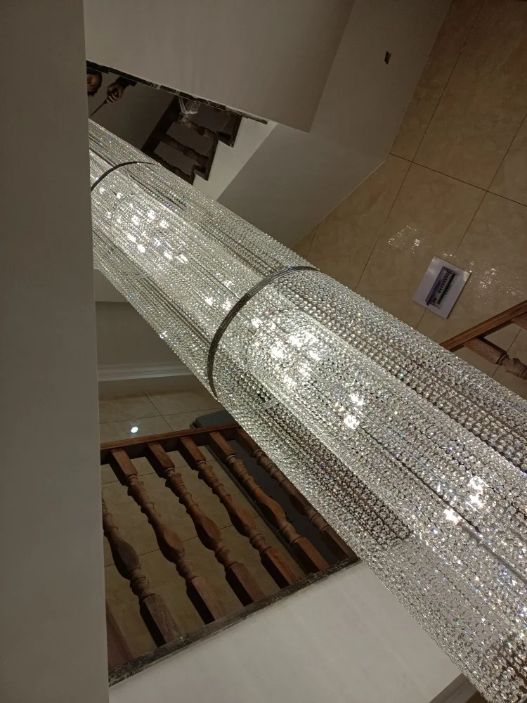 Ce lustre en cristal pour escalier en colimaçon est conçu pour les intérieurs à hauts plafonds où un éclairage spectaculaire et une décoration luxueuse sont essentiels. Sa forme en spirale élégante, ornée de détails en cristal, crée un effet lumineux vertical saisissant, idéal pour les escaliers en duplex, les espaces de vie de villas, les salles à manger et les halls d'hôtels.