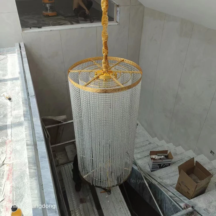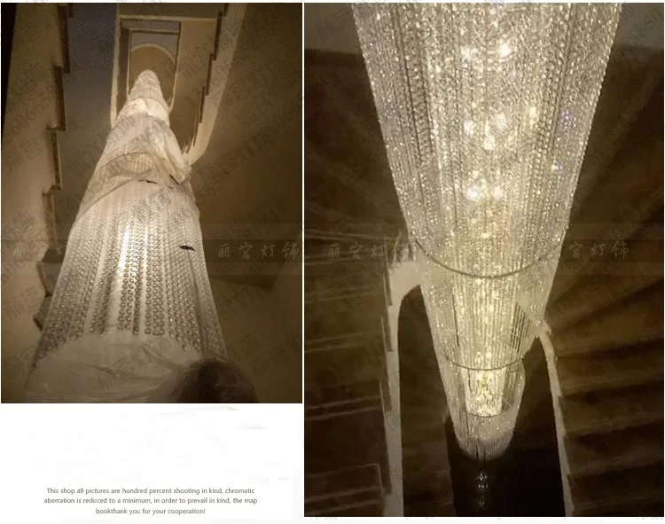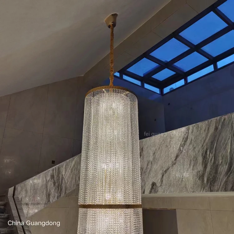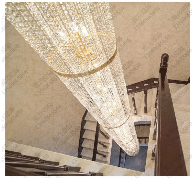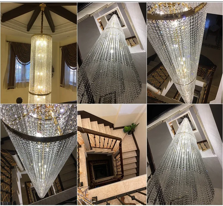 Lustre en cristal pour escalier en colimaçon, idéal pour les halls de villas et d'hôtels.