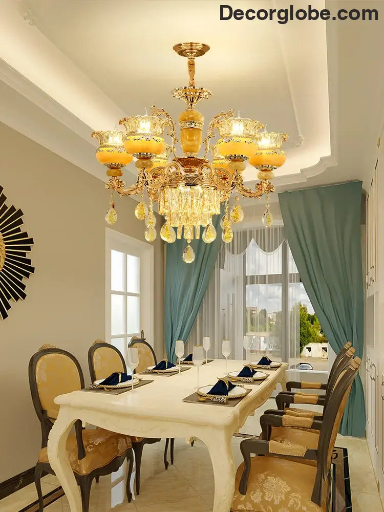 Elegant European Style Crystal Chandelier - A Luxurious Jade-Inspired Main Lamp for Living Rooms, Bedrooms, and Hallways - DecorGlobe