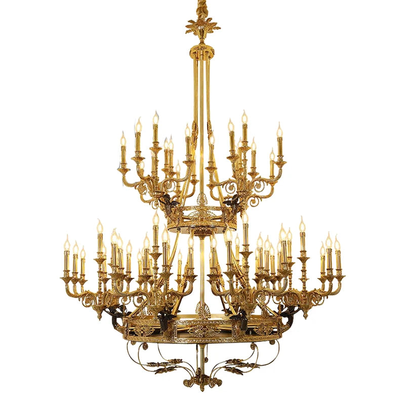 Inspired by traditional European church lighting, this retro brass angel chandelier brings timeless elegance to grand interiors. Crafted from durable bronze with an antique finish, it features upward-facing candle-style arms that create a warm and refined atmosphere. Ideal for villas, duplex homes, and statement living spaces, this chandelier enhances interiors with classic architectural charm and decorative detailing.