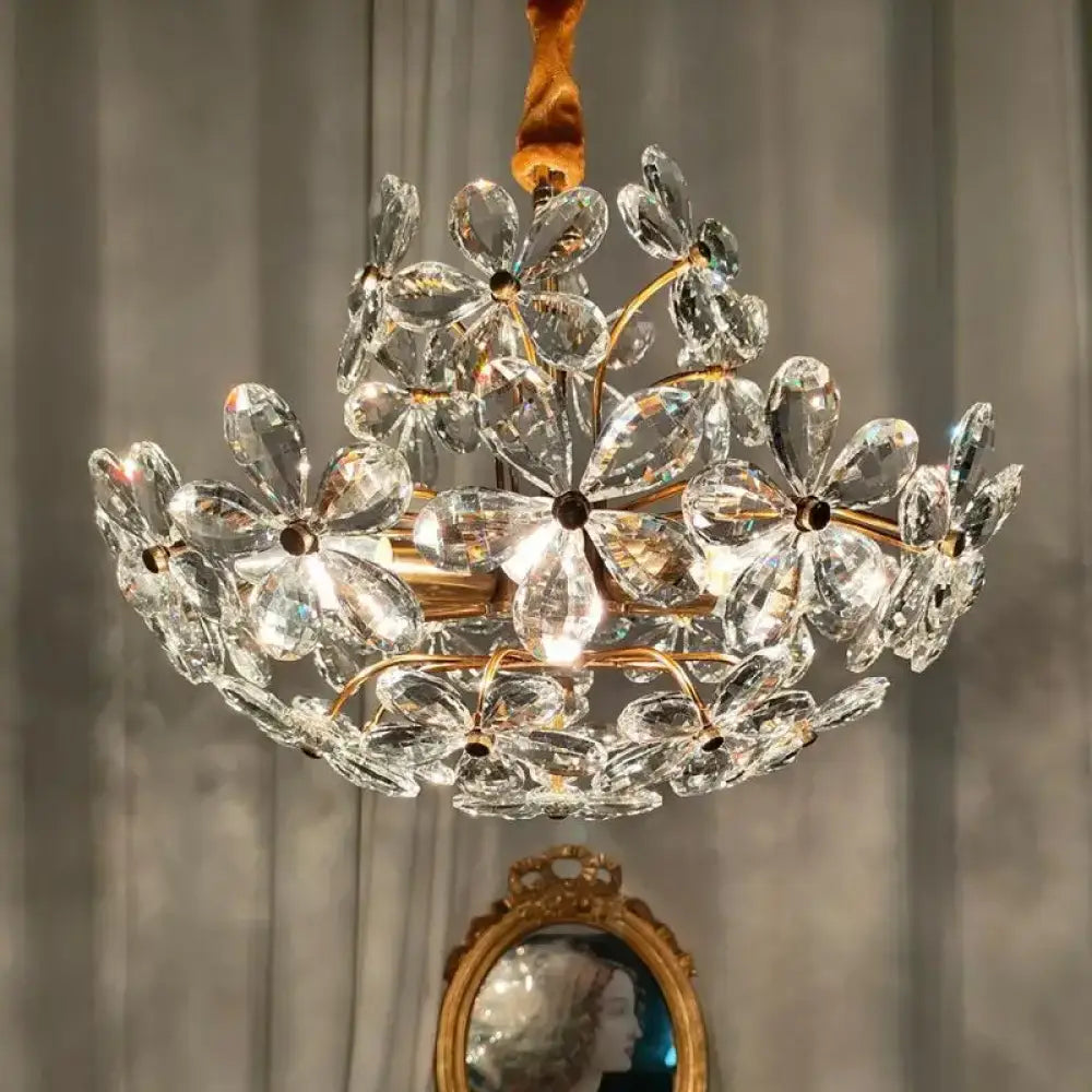 Elegant Crystal Flower Chandelier - New Style Dream with French Pastoral and American Retro Flair for Bedroom and Dining Room - DecorGlobe