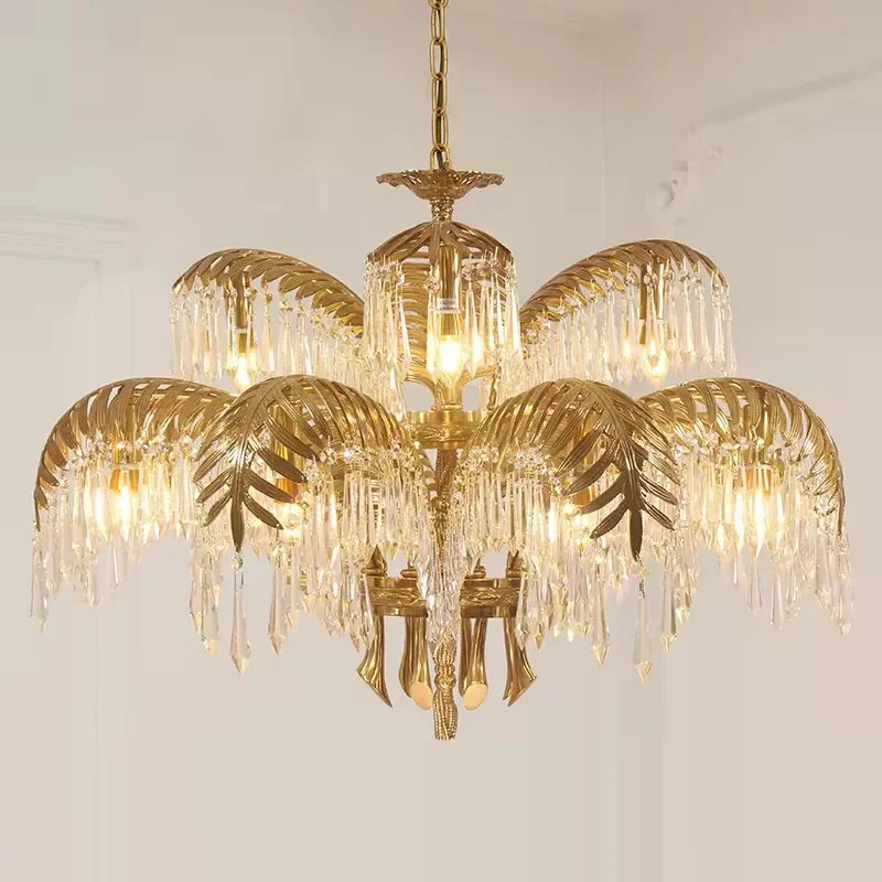 Grand lustre en cristal pour l'éclairage d'une villa duplex et d'un hall d'hôtel
