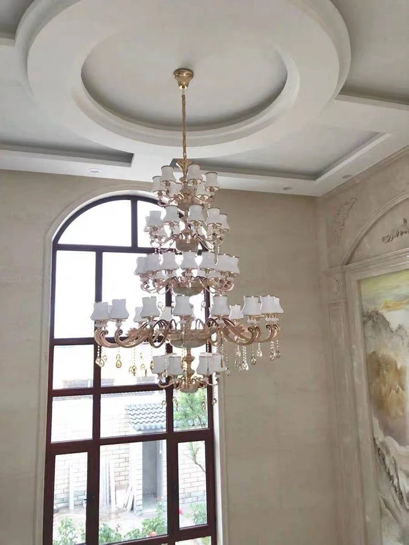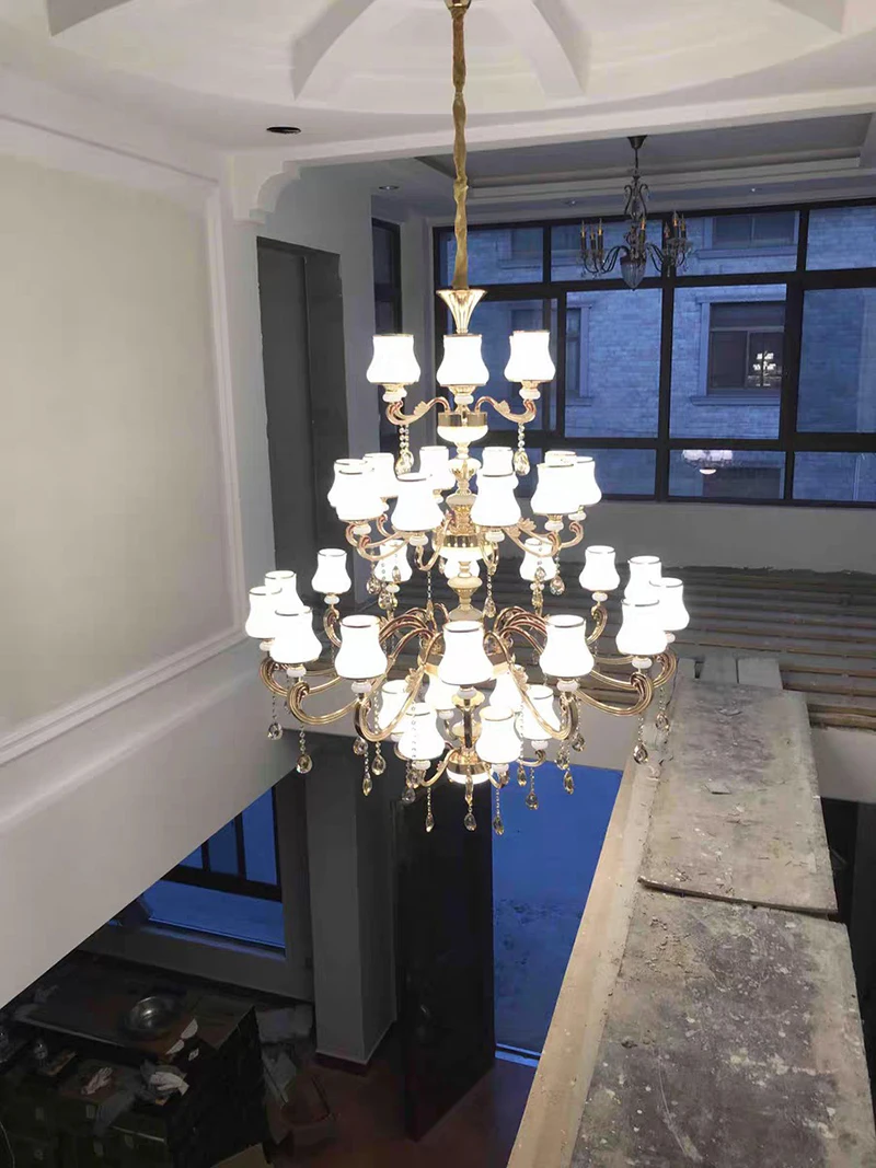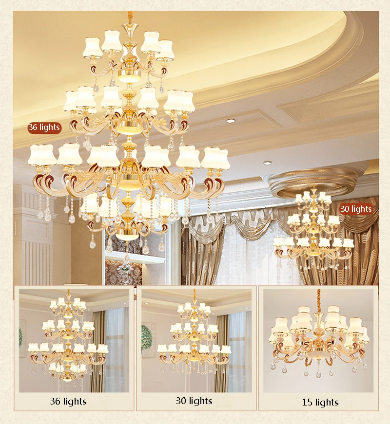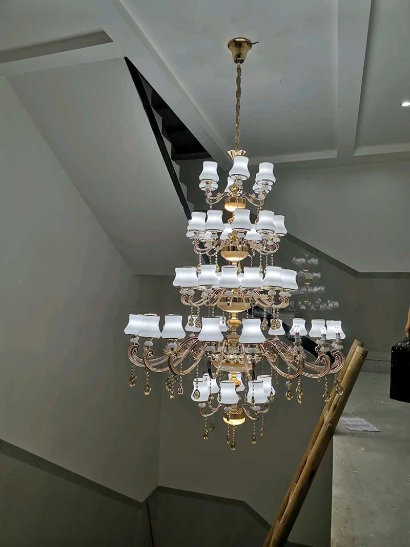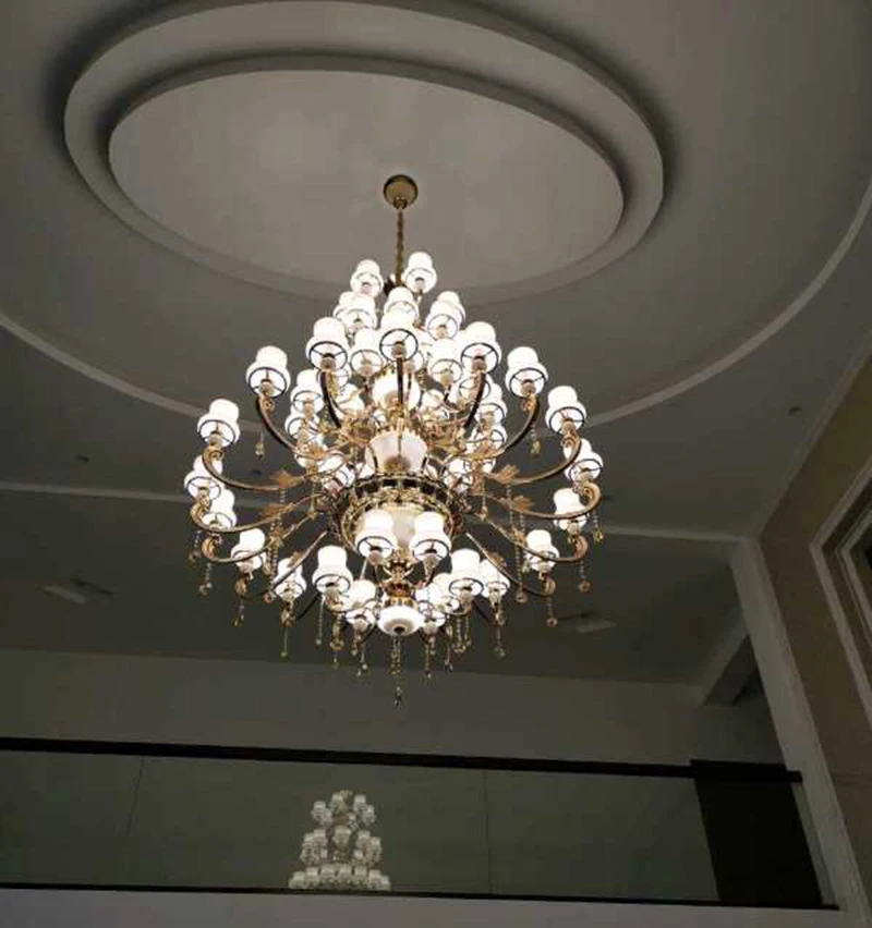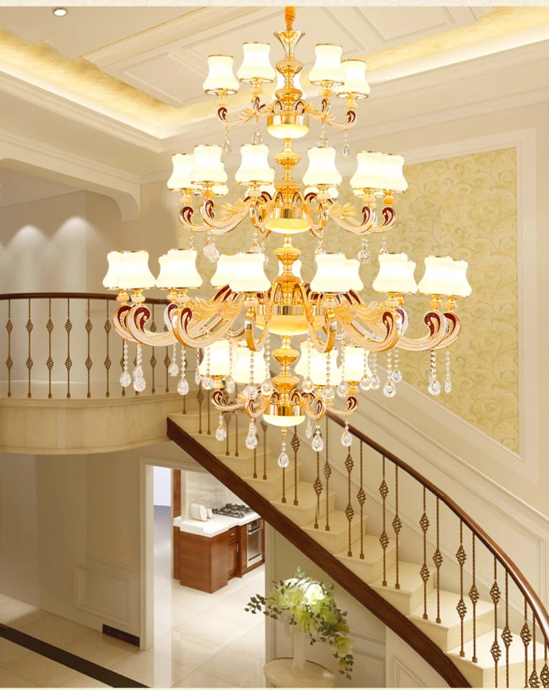 Grand lustre en cristal pour l'éclairage d'une villa duplex et d'un hall d'hôtel