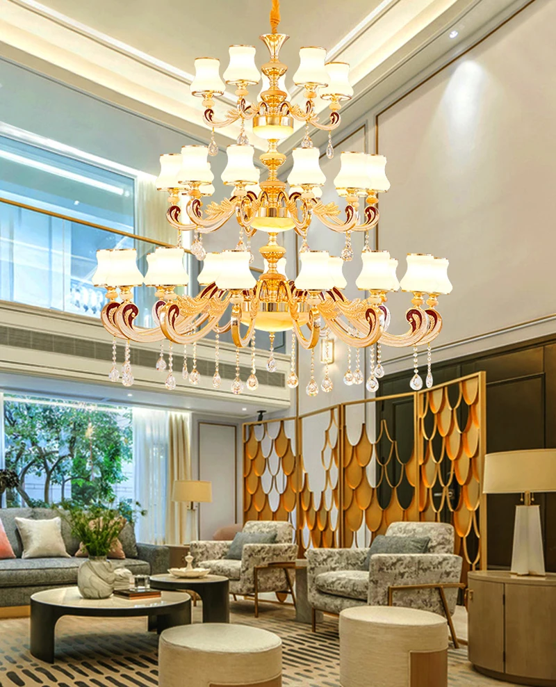• Conception de lustres imposants pour villas duplex et intérieurs à hauts plafonds