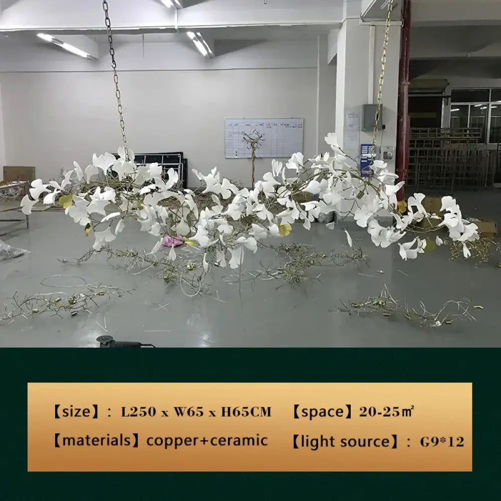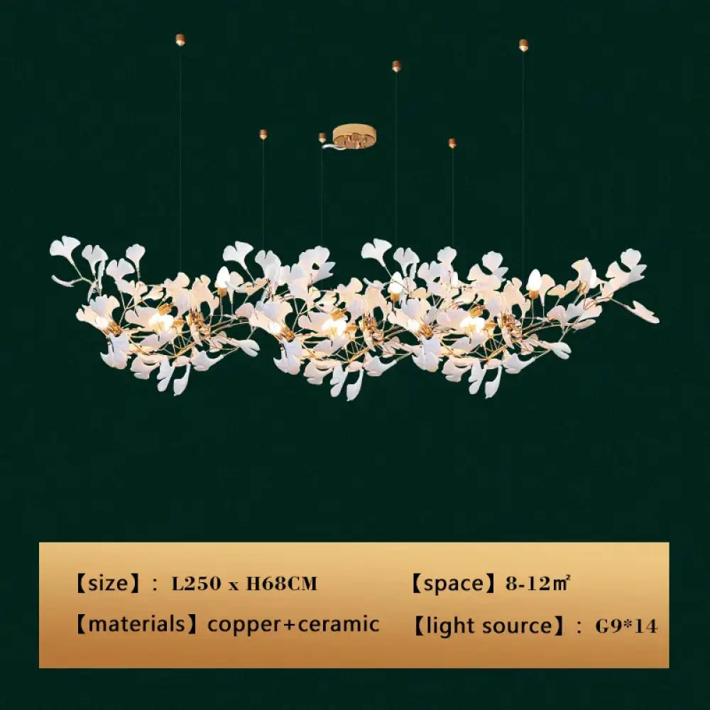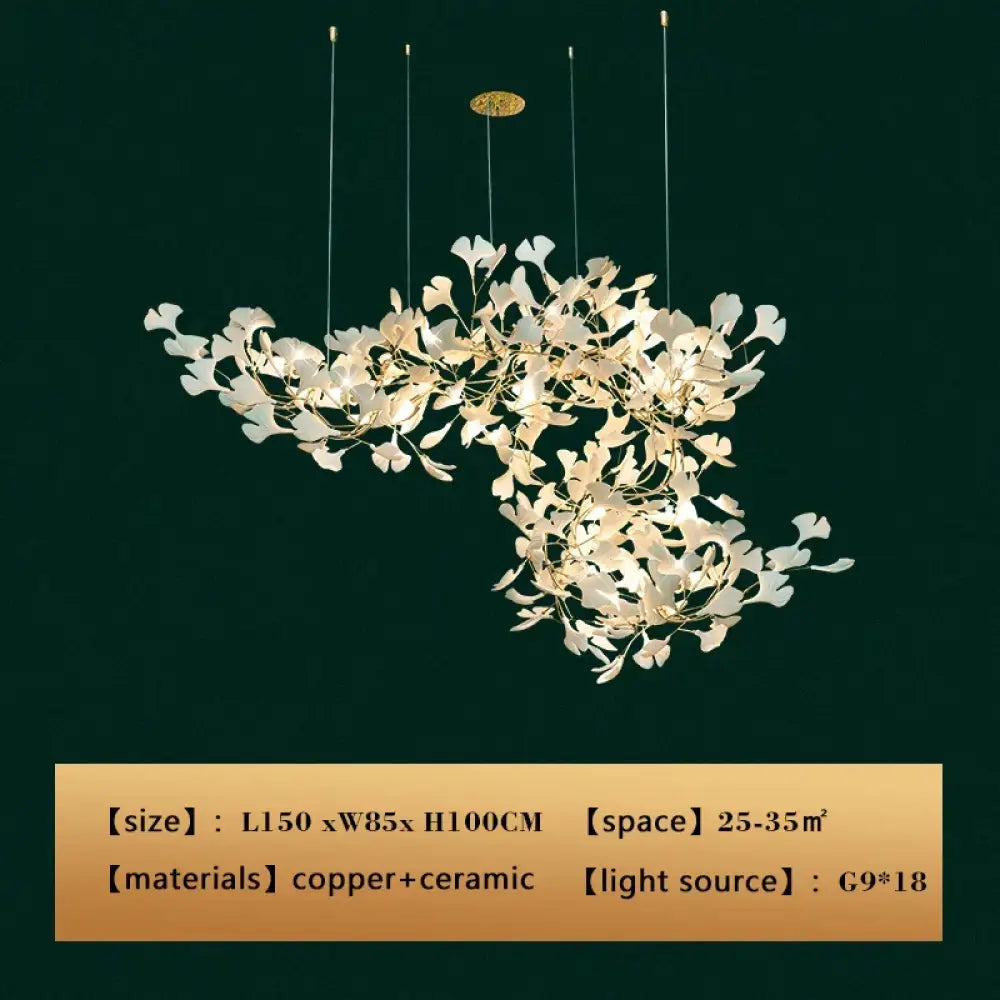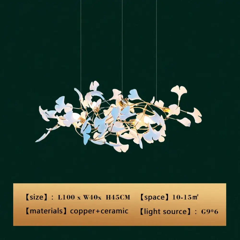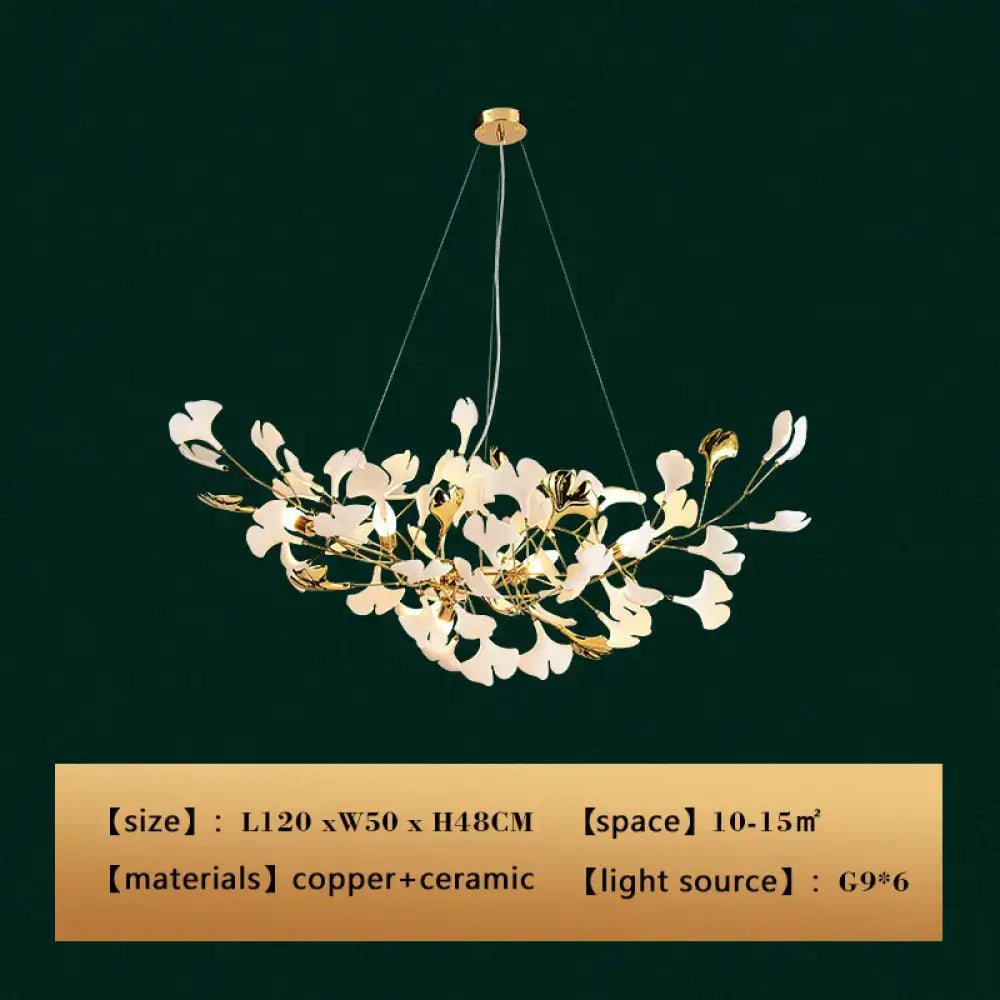 Lustre en céramique dorée à feuilles pour salon et escalier