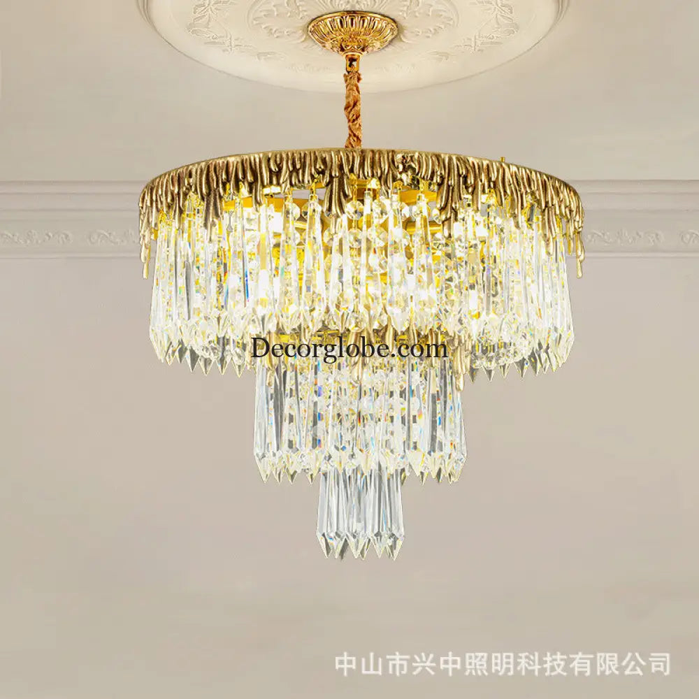 The champagne-colored chandelier looks very elegant, like real crystal. The seller packs all the chandelier parts very well. I have ordered chandeliers from this seller 5 times and everything has always arrived intact. I am very satisfied with the purchase, especially the price!